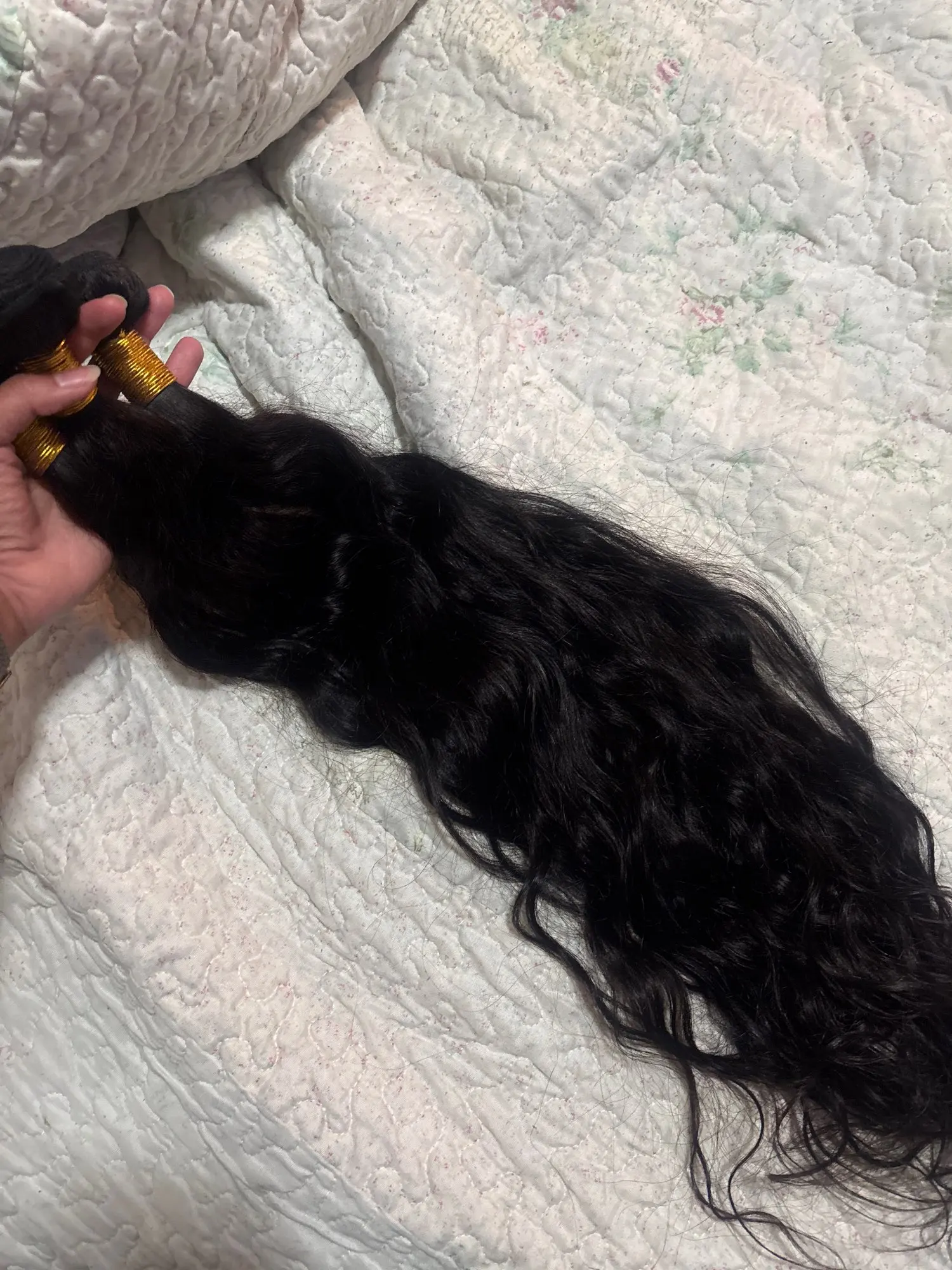 I am in love with this hair. First of all it came only 3 days after i ordered and it is also so soft and full and it has yet to shed. Like i was purposefully trying to tangle it while washing it and it still has yet to shed. They are still a little wet in this picture but still so soft. Im so excited to turn these bundles into a wig